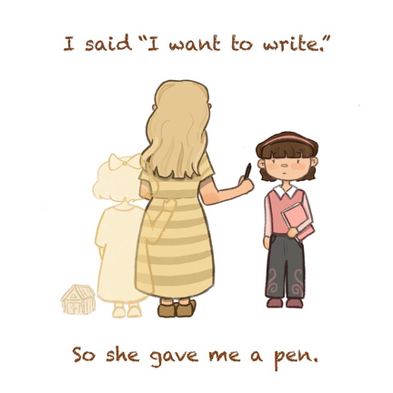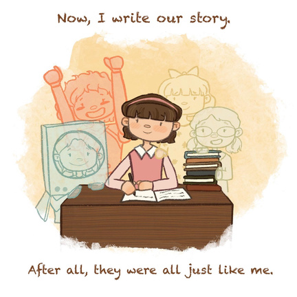 To emphasize the importance of role models to young women. To become those who believe in themselves and believe in others. To disdain not just misogyny but internalized misogyny. To look back at past generations of women with compassion. To find not just grown ups bitter but inner children suppressed. To wonder what have I been told. To refine what I do tell. To decide how the cycle ends. To give a pen to a writer. A brush to an artist. And to finally say, "We can."